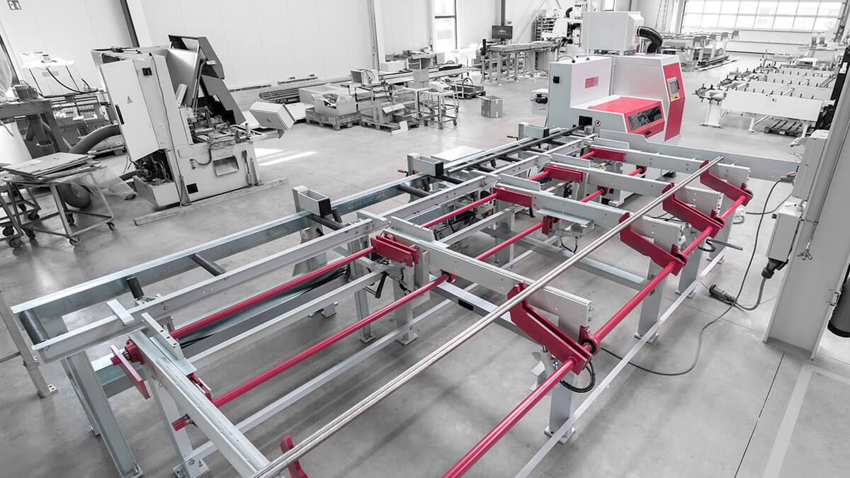 A bar loading magazine is the best choice for supplying the circular saw line with round material from an initial length of 2,200 mm. Round bars and pipes are usually delivered in a bundle and placed on the magazine's robust material storage. There, the bundle is opened, and the rods are distributed as a layer on the magazine.